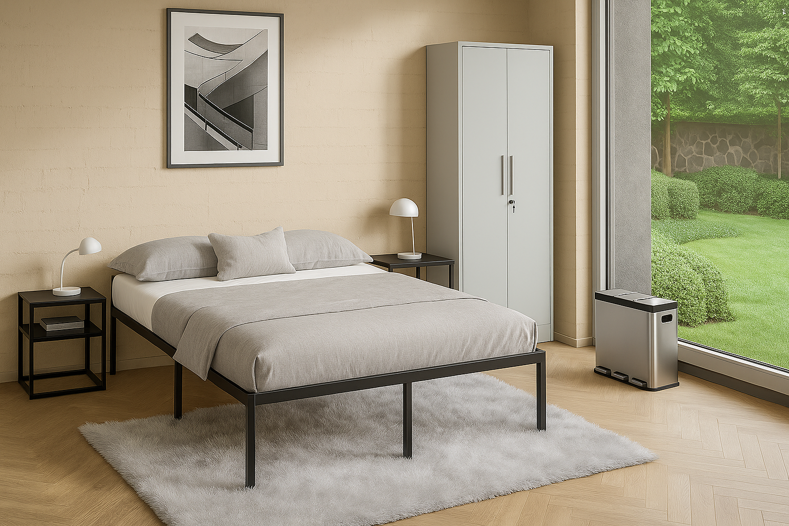 Das Metallbett „Situla“ überzeugt durch sein schlichtes Design, robuste Konstruktion und vielseitige Einsatzmöglichkeiten. Mit klaren Linien und ohne Kopf- oder Fußteil fügt es sich flexibel in jedes Schlafzimmer ein – von minimalistisch bis gemütlich verspielt.