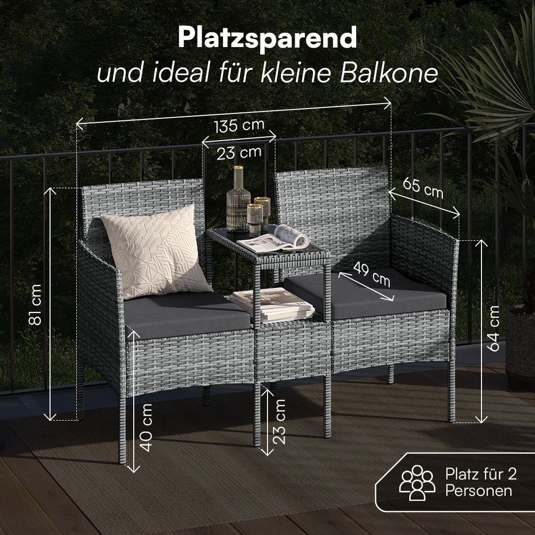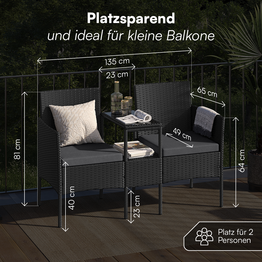 2-Sitzer-Gartenbank „Velara“ aus Polyrattan mit integriertem Tisch