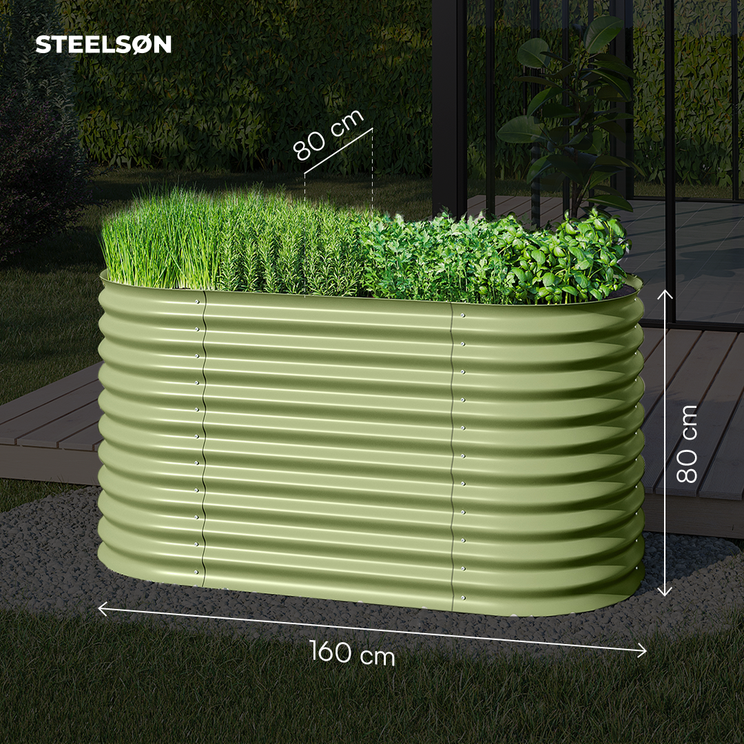 Mit seiner großzügigen, ovalen Form bietet das Hochbeet viel Platz für unterschiedliche Pflanzen und lässt sich dennoch einfach und schnell montieren – auch ohne handwerkliche Erfahrung.