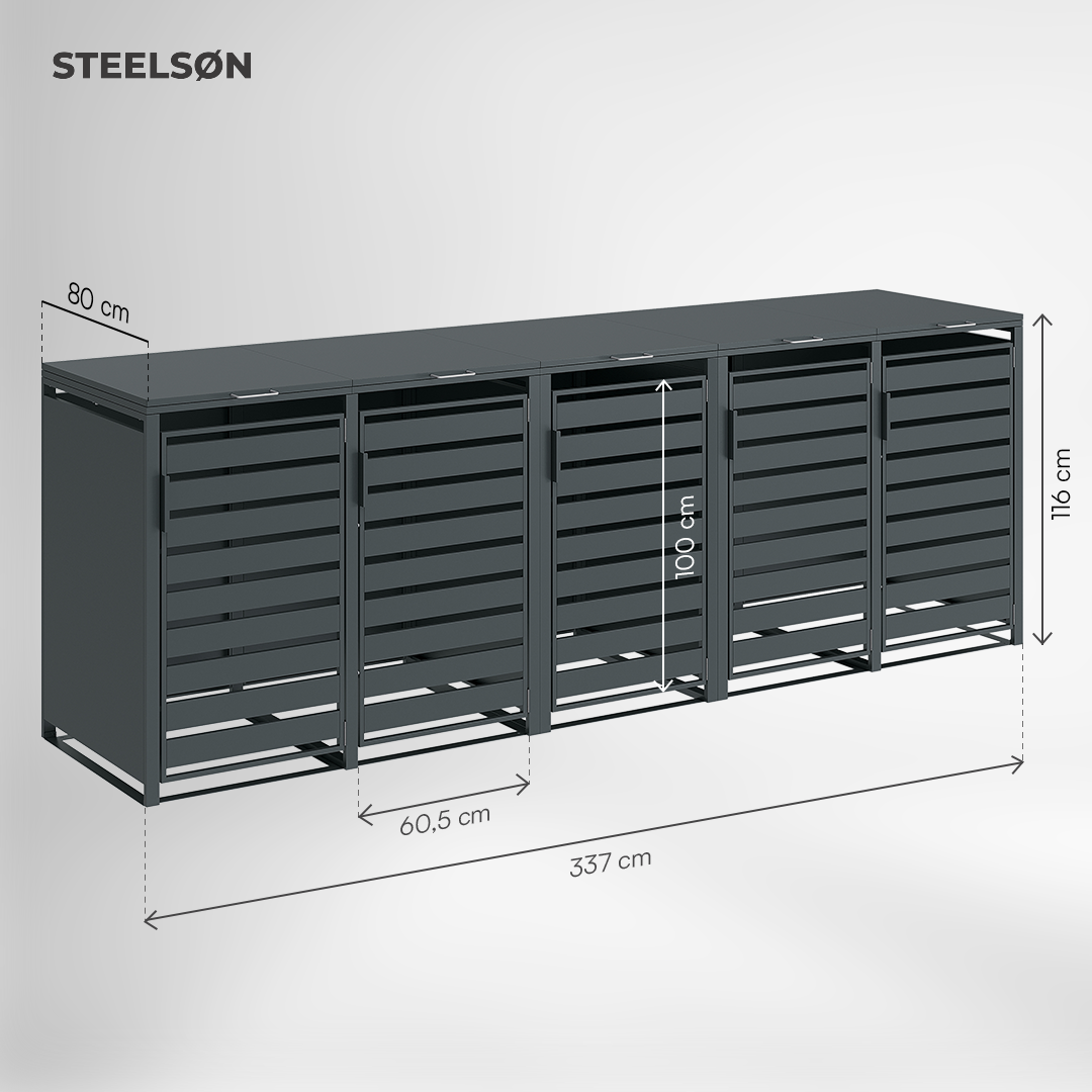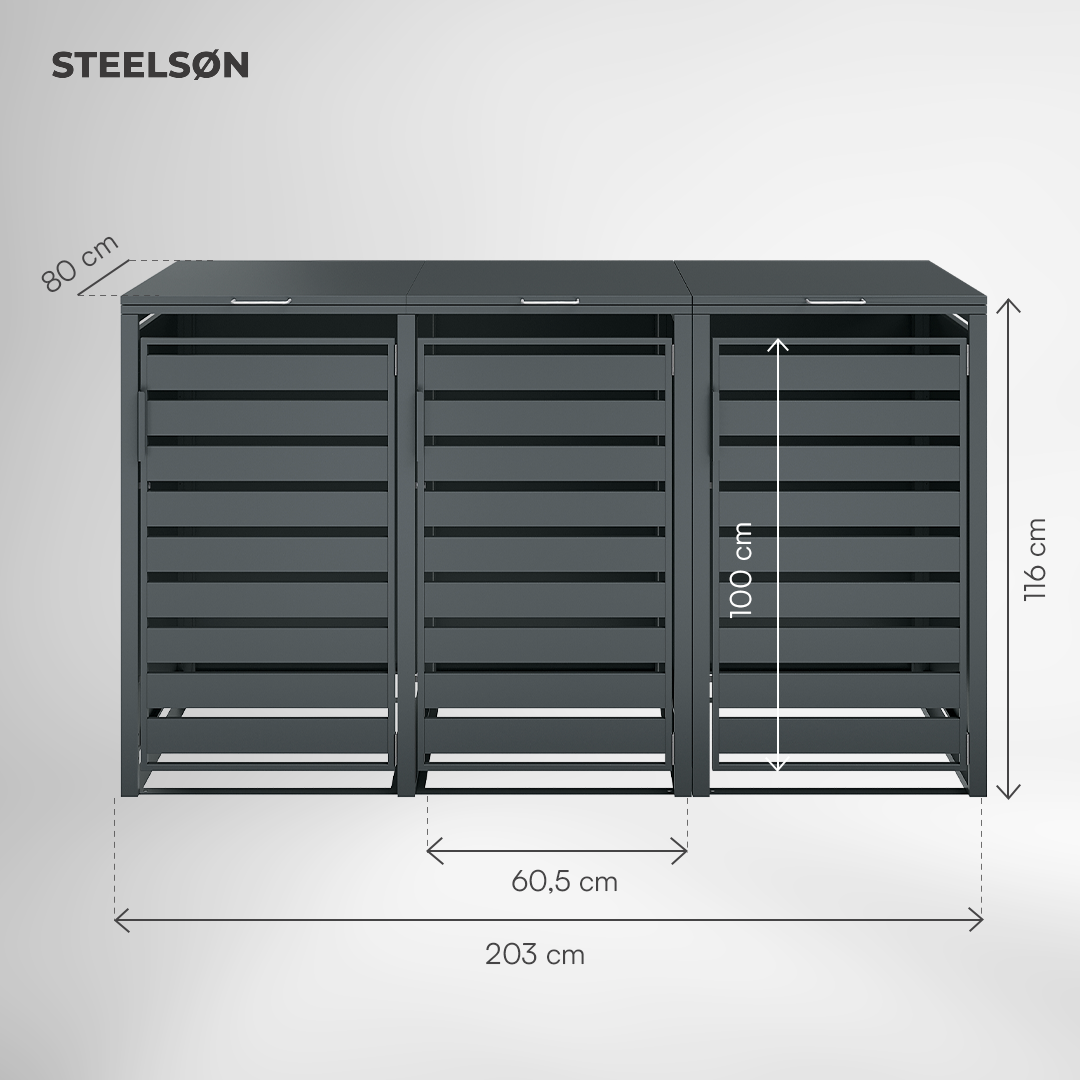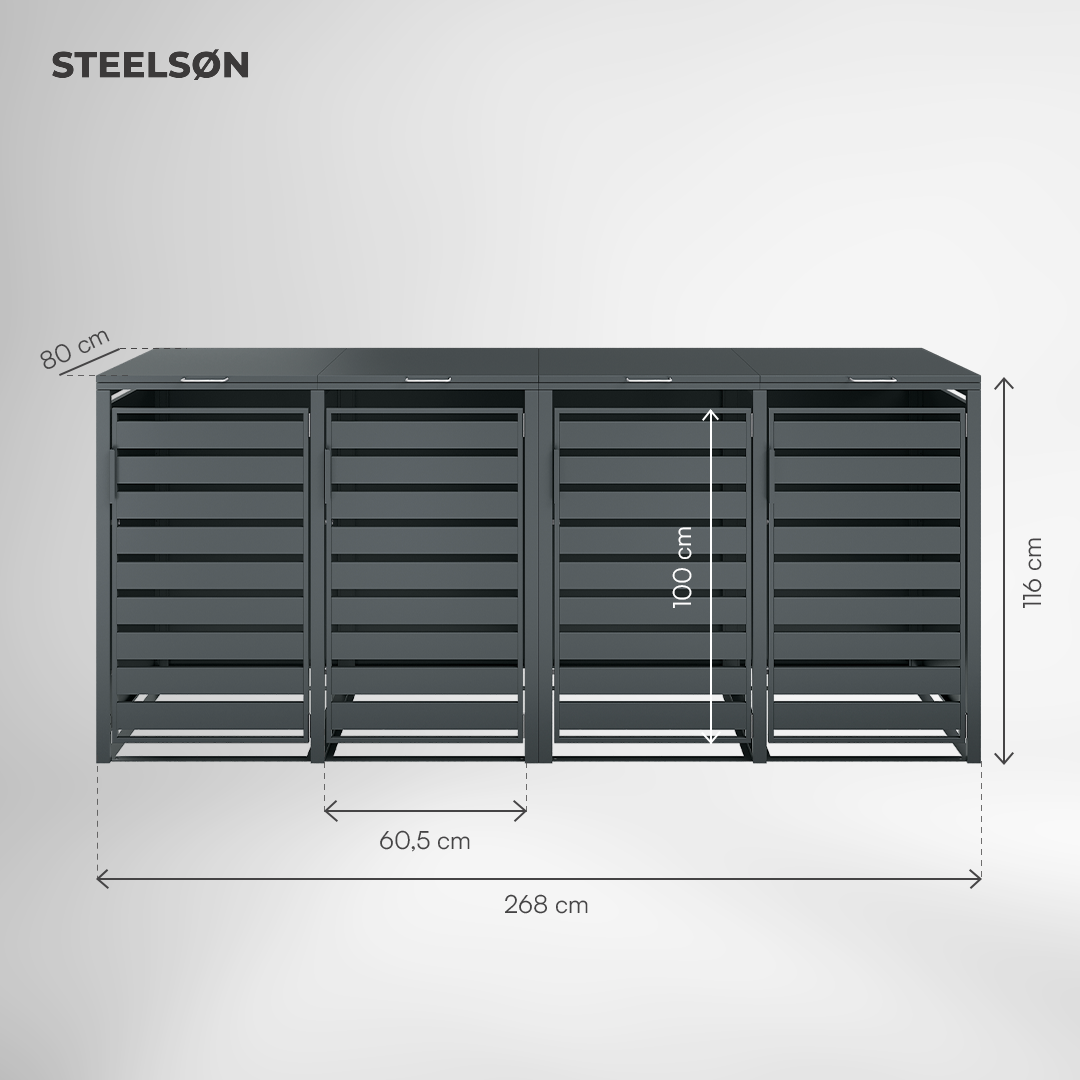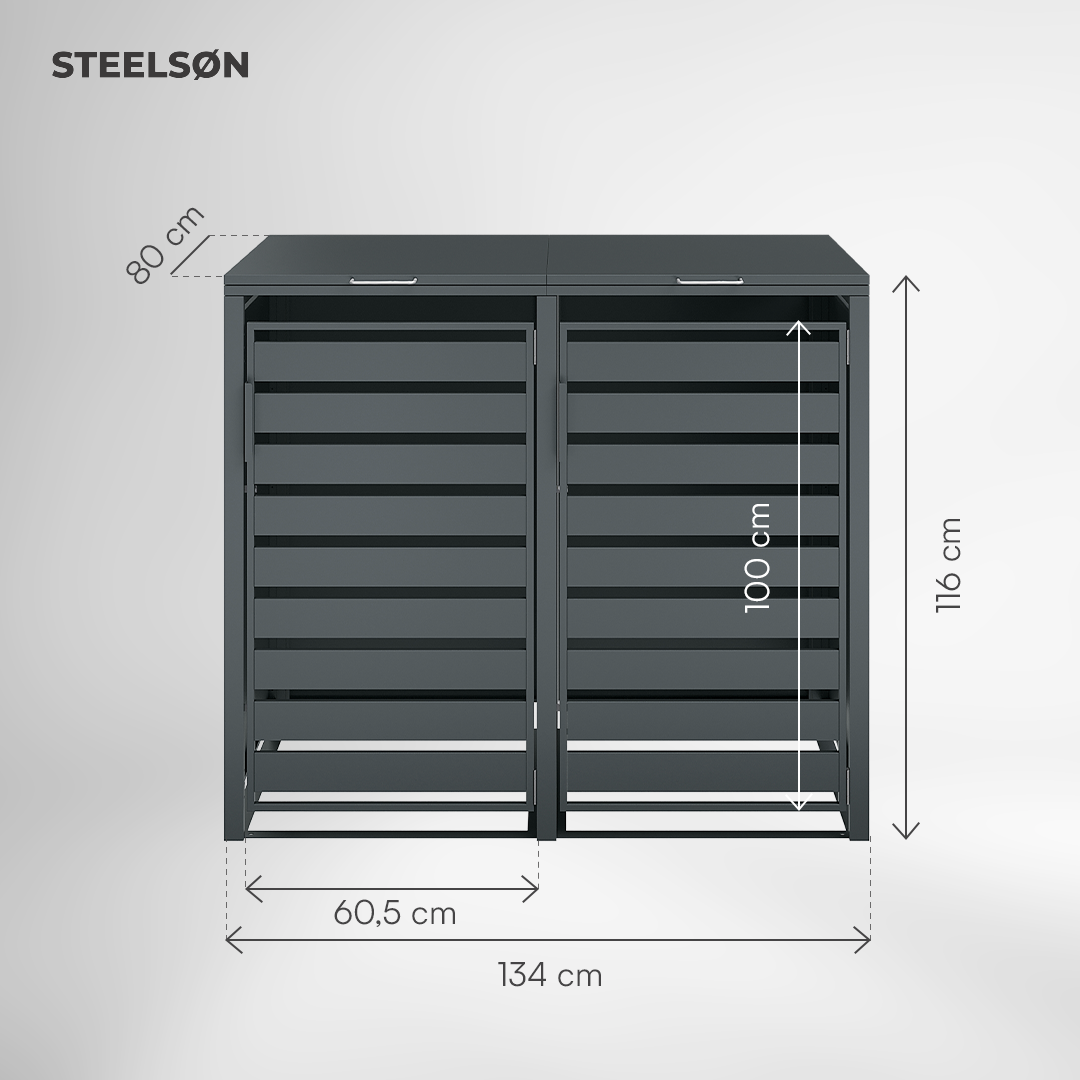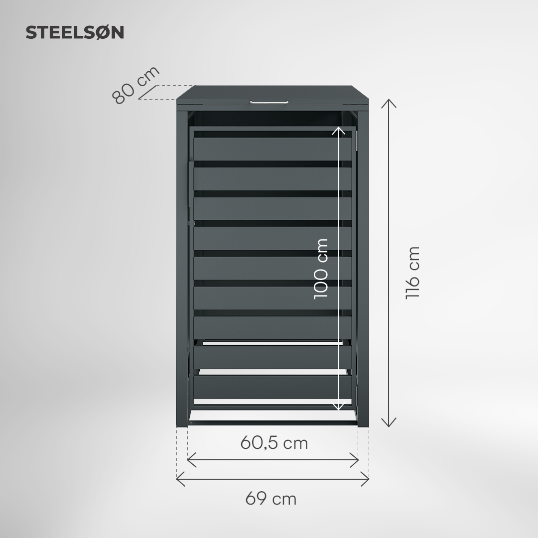 Gefertigt aus robustem, pulverbeschichtetem Stahl ist Kestra witterungsbeständig und langlebig. Ein praktischer Frontgriff und ein sicherer Magnetverschluss runden die Bedienung ab und sorgen jederzeit für ein gepflegtes Erscheinungsbild.