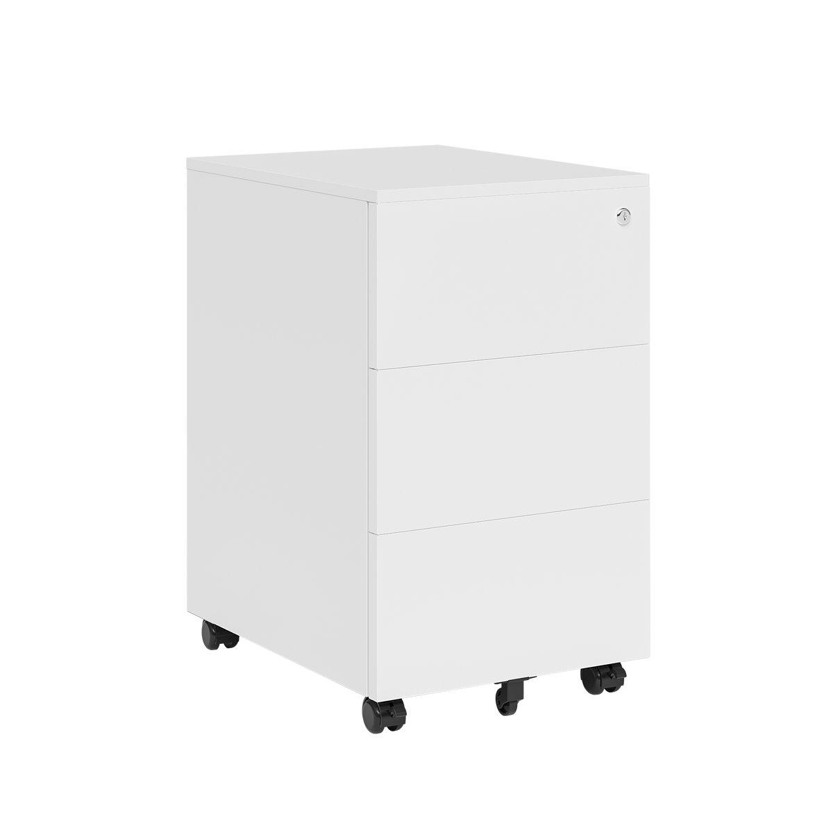 Der Rollcontainer Vespero bietet mit einer großen und zwei kleineren Schubladen viel Stauraum für Akten, Büromaterial und persönliche Gegenstände. Ein integriertes Schloss in der oberen Schublade schützt vertrauliche Unterlagen zuverlässig – ideal für Büro oder Home-Office.